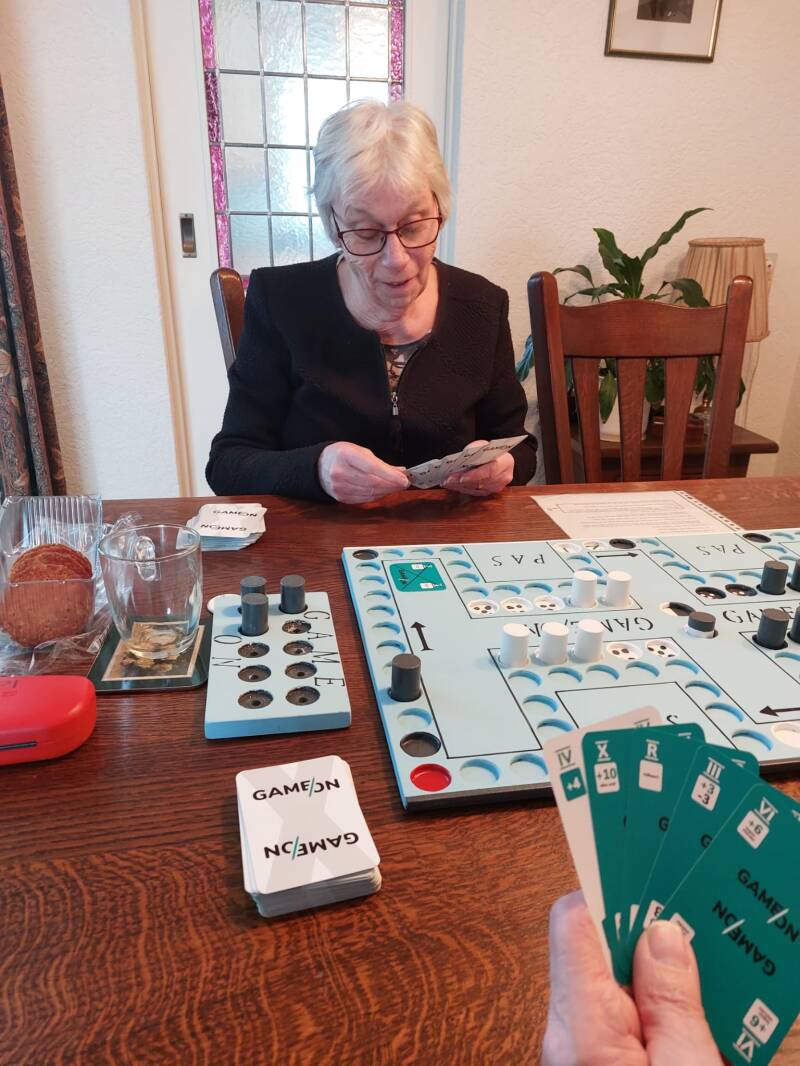 Ans heeft zojuist haar ruilkaart gespeeld en is tevreden.