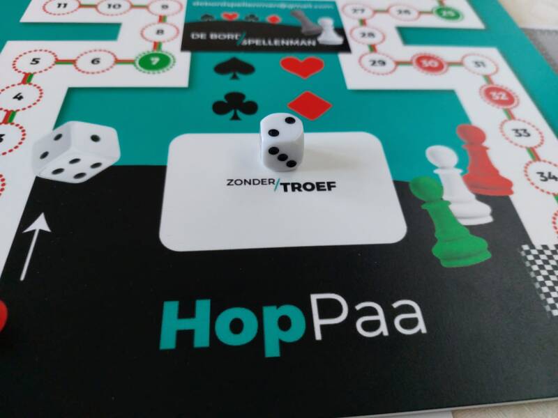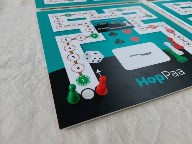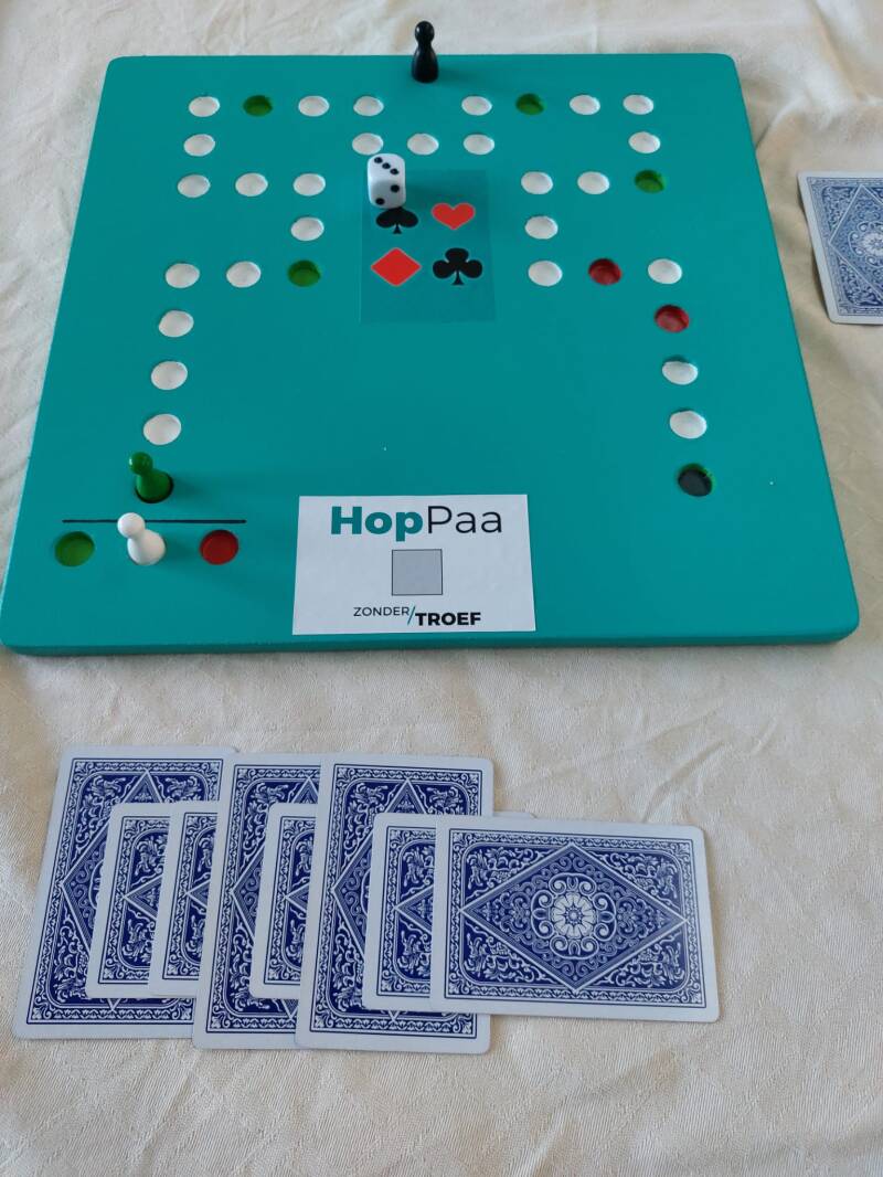 HopPaa is een combinatie van een bordspel en een kaartspel, een spel dat zeer herkenbaar is voor de zgn. Rikkers.
