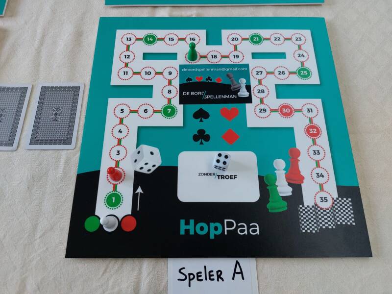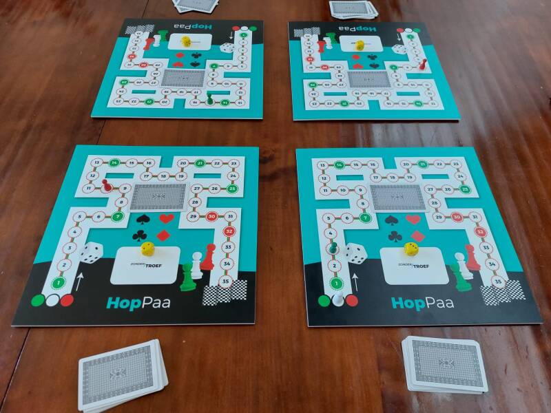 HopPaa mengt een kaartspel met een pionnenspel tot een bordspel, wat het eigenlijk tot twee spellen in één maakt.