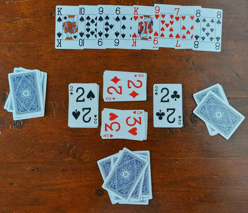 Bepaal wie er als startspeler het spel begint door een hoogste kaart te draaien bijvoorbeeld.