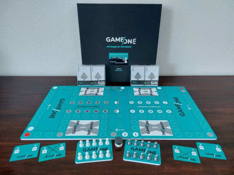 Het bordspel GameOne kun je met 2 of 4 spelers spelen.