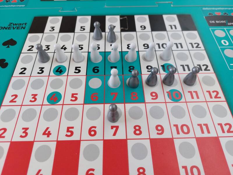 De twéé langste rijen mogen zowel horizontaal als verticaal gevormd worden en op beide helften van het spelbord.